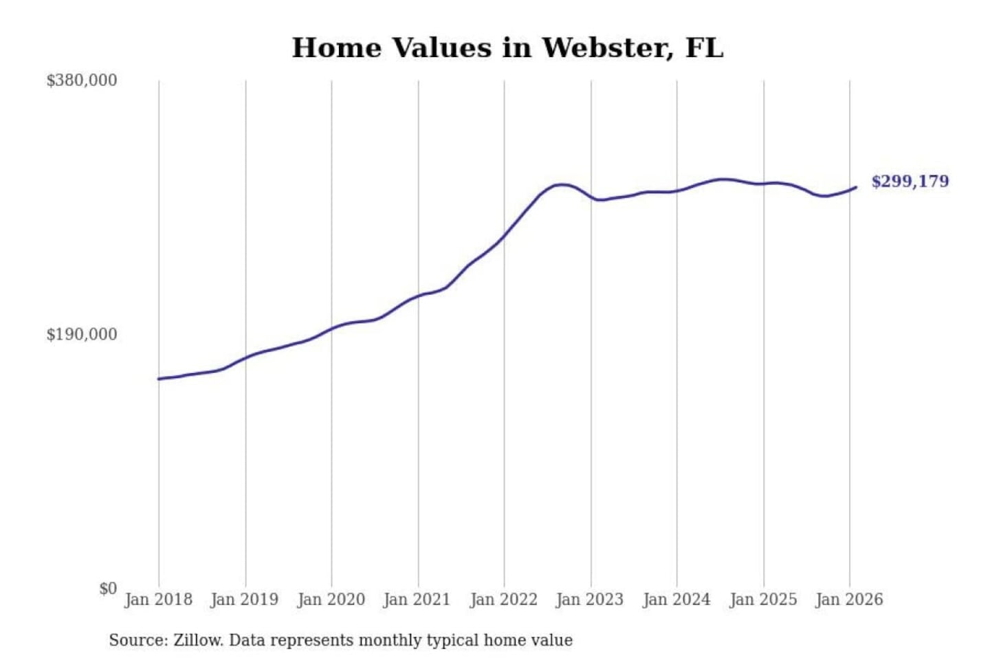 Stacker compiled a list of cities with the most expensive homes in the The Villages, FL metro area using data from Zillow. Charts show the monthly typical home value since January 2018.
