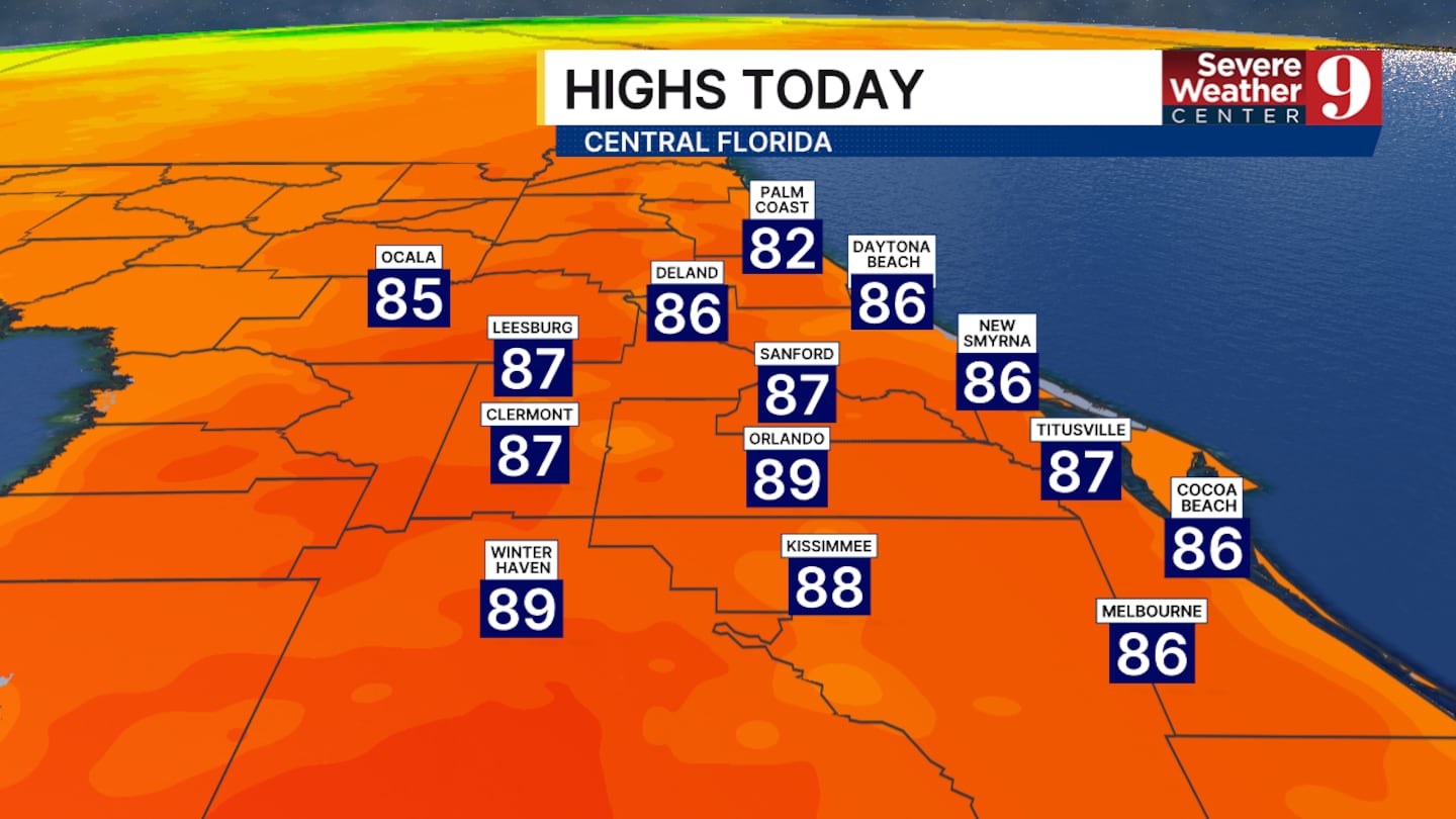 Today, temperatures will begin in the upper 80s, which is warmer than usual for this period. As the cold front approaches, a cooling trend will ensue, reducing temperatures to the mid 80s by tomorrow.