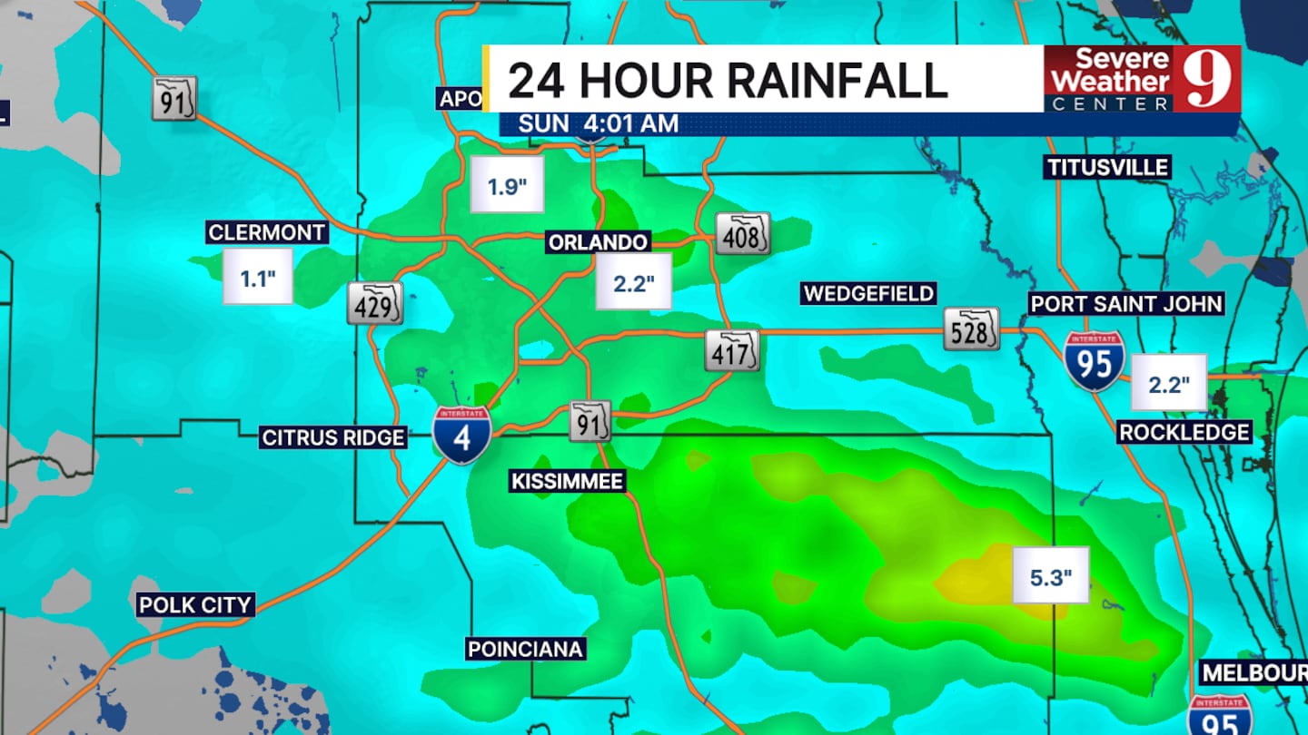 ORLANDO, Fla. — The Central Florida area experienced significant rainfall yesterday, with some areas receiving between three and five inches, and more rain is anticipated today.