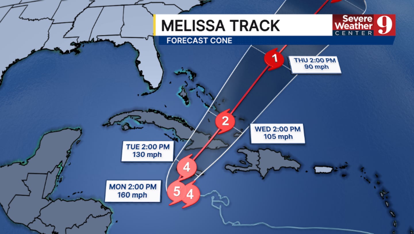 Stay with Severe Weather Center 9 for the latest on Melissa.