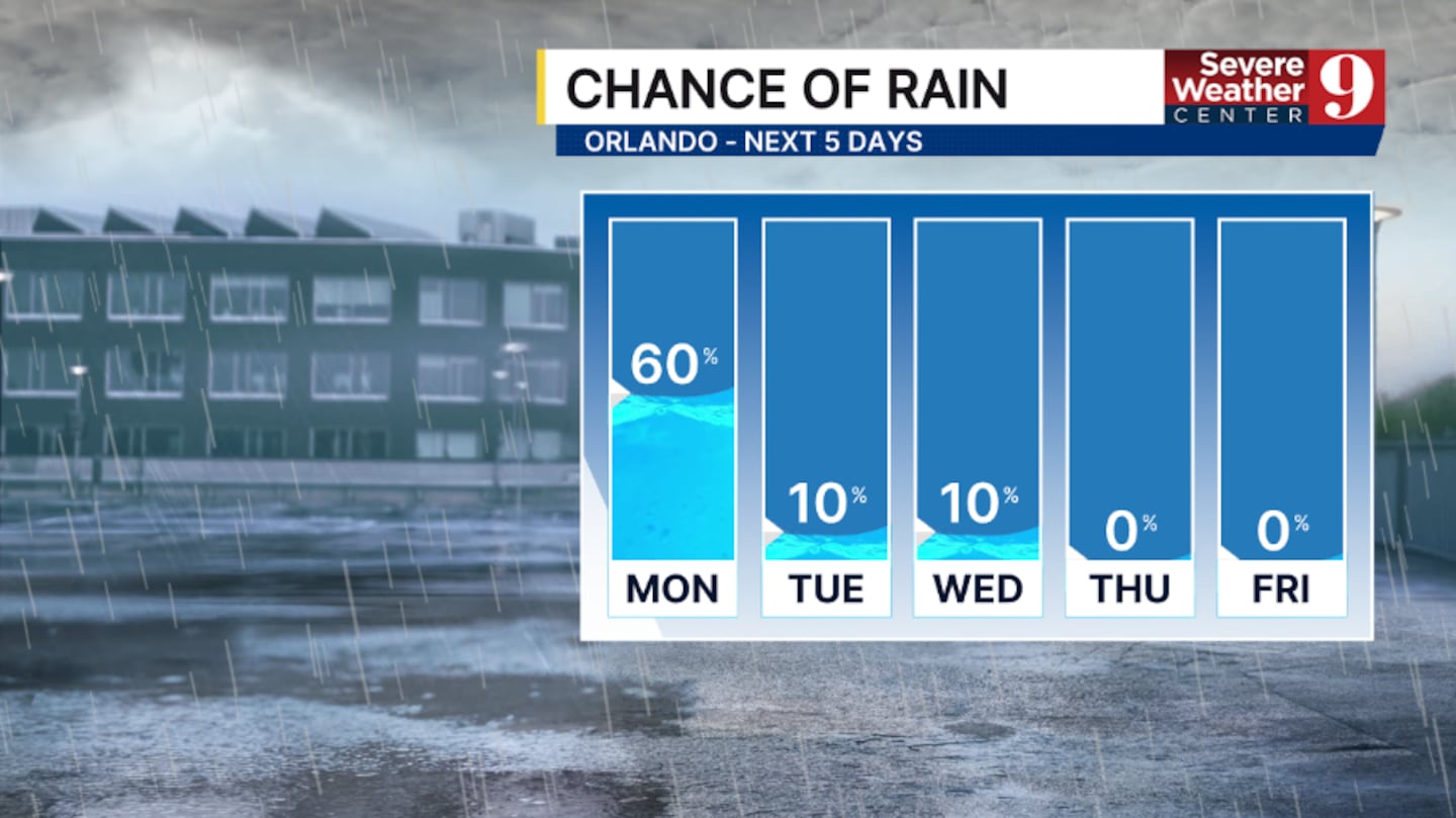 ORLANDO, Fla. — After what turned into an active Sunday, more rain is likely to start the work week.