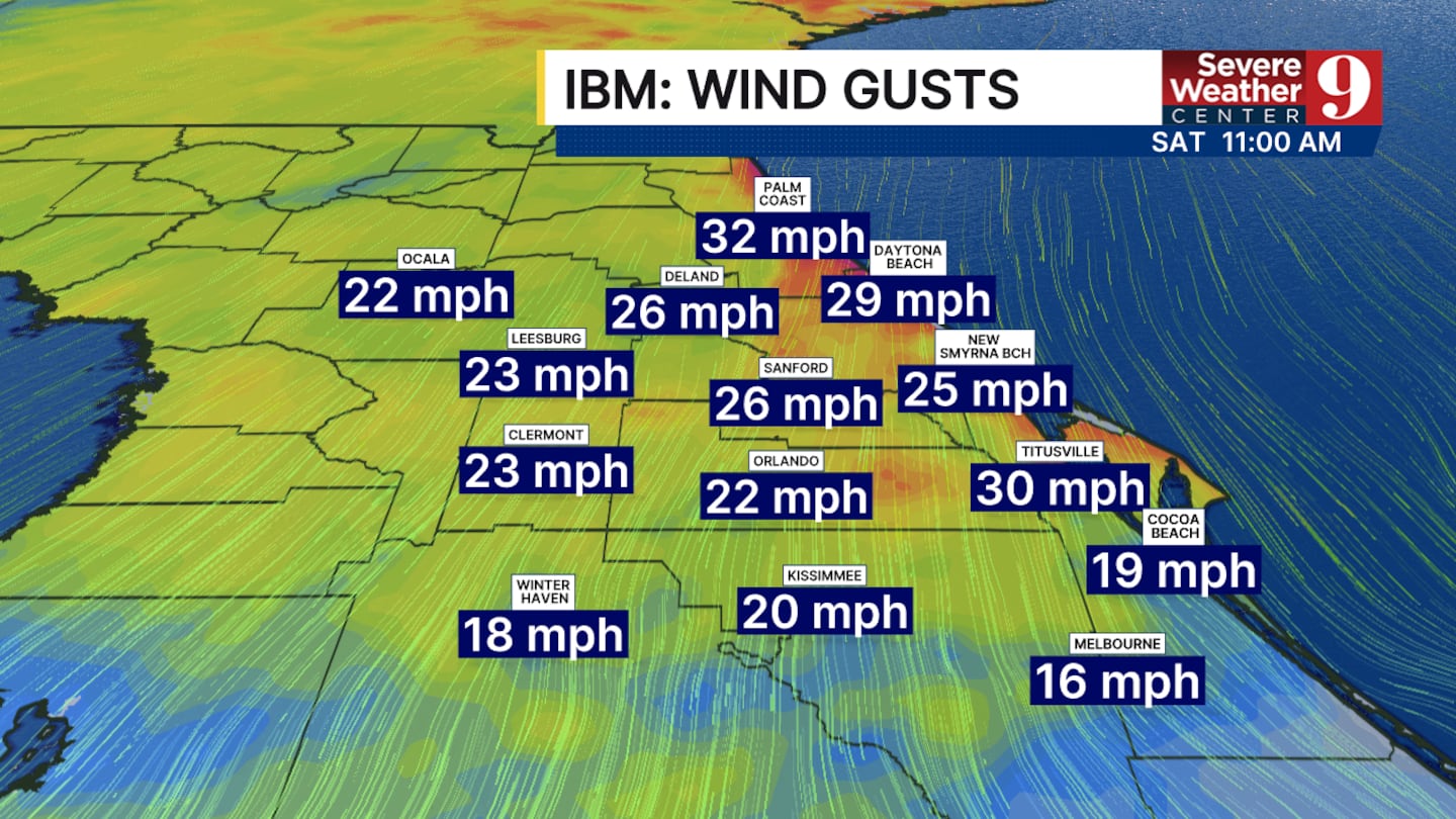It will stay mostly cloudy throughout much of Saturday in Orlando, with the weather forecast calling for overcast skies lingering into the afternoon. The wind gusts will also be something to watch—expect them as high as 25 mph during peak hours, per the latest 10-day forecast.