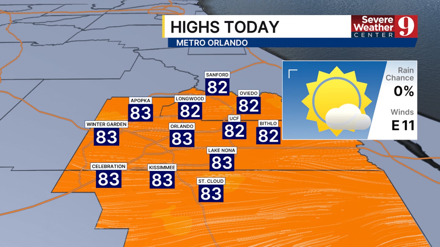 ORLANDO, Fla. — Central Florida will experience sunny weather with highs in the low 80s on Saturday. However, a cold front moving through the country is expected to bring changes by Sunday evening.