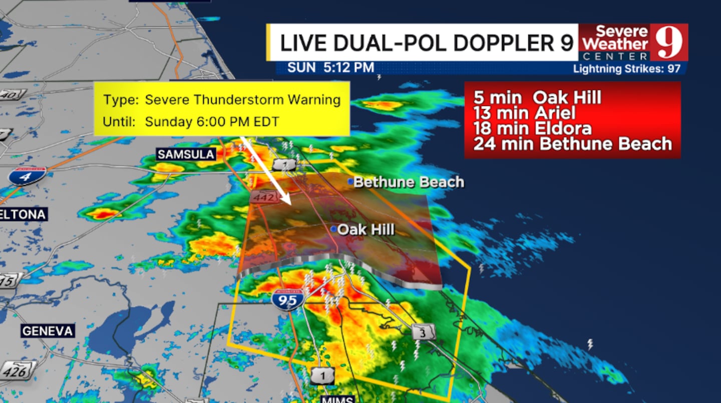 A Tornado & T-Storm Warning has been issued for Seminole County, while just a T-Storm warning was issued for southern Volusia counties until 6:15 PM.