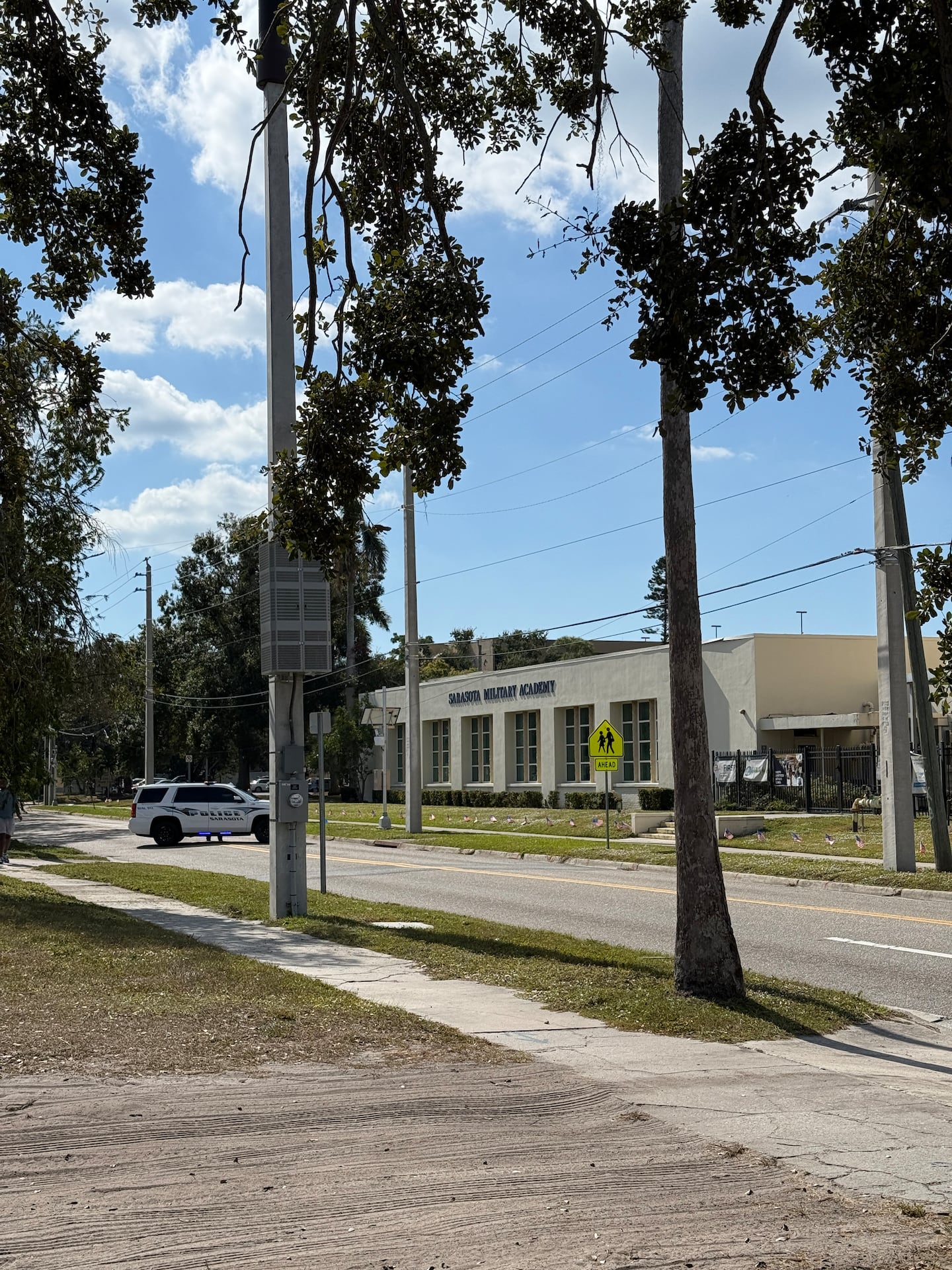 SARASOTA, Fla. — The Sarasota Police Department responded to a suspicious backpack at Sarasota Military Academy on Tuesday, Nov. 18, prompting a temporary evacuation and road closure.