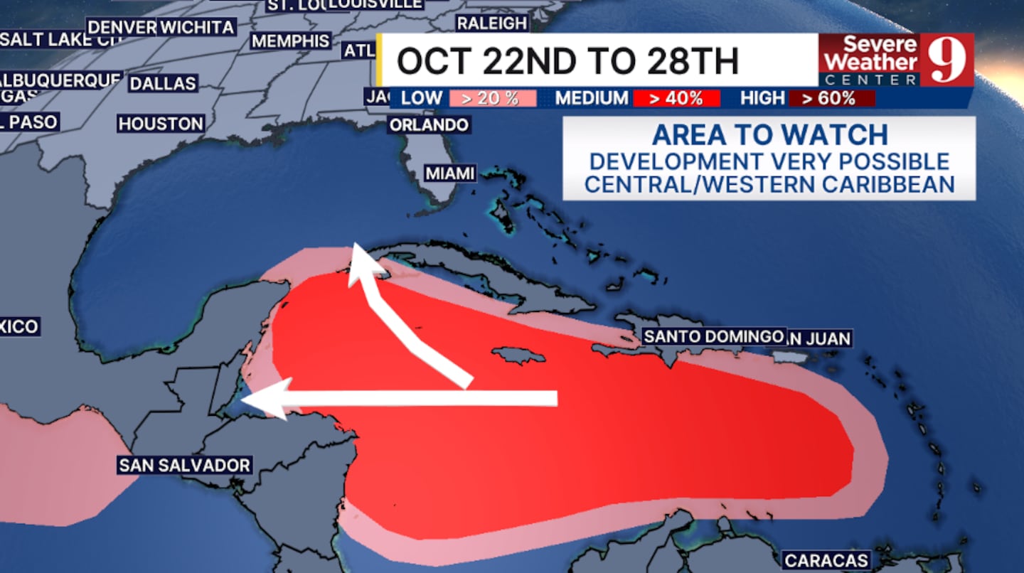 In the long term, a large western and central Caribbean area may be primed for development.