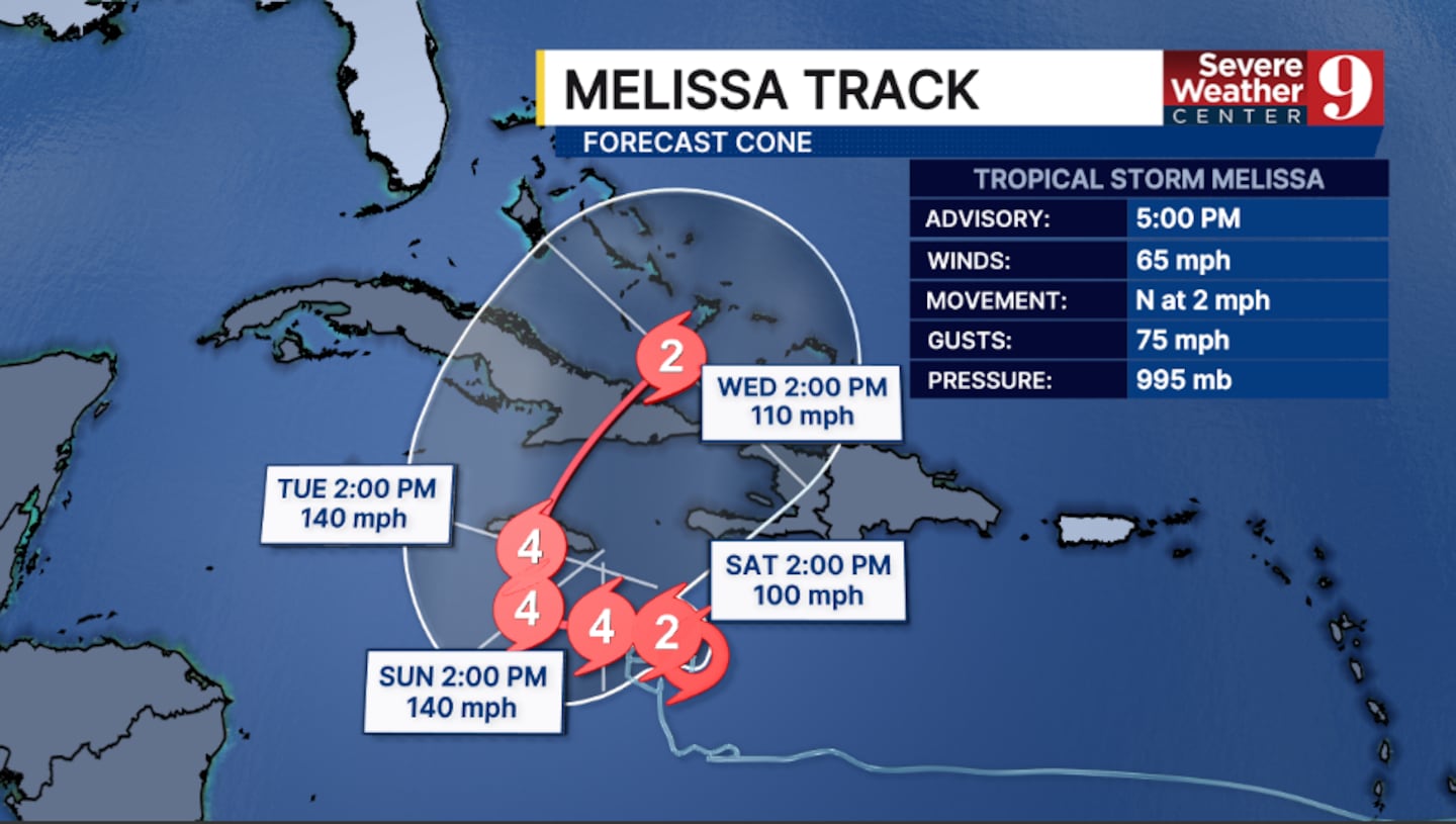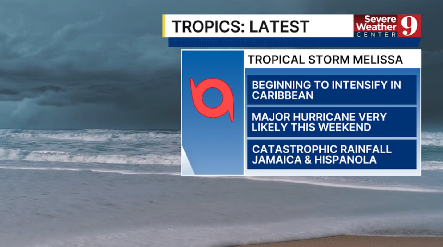 ORLANDO, Fla. — Tropical Storm Melissa has begun to organize Friday evening and is on track to be a major hurricane this weekend near Jamaica.