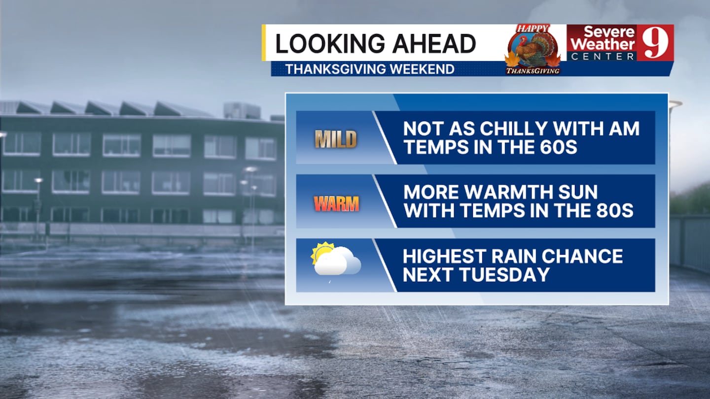 - Wednesday–Saturday: Cooler, drier, highs 68–73°, lows 53–58°