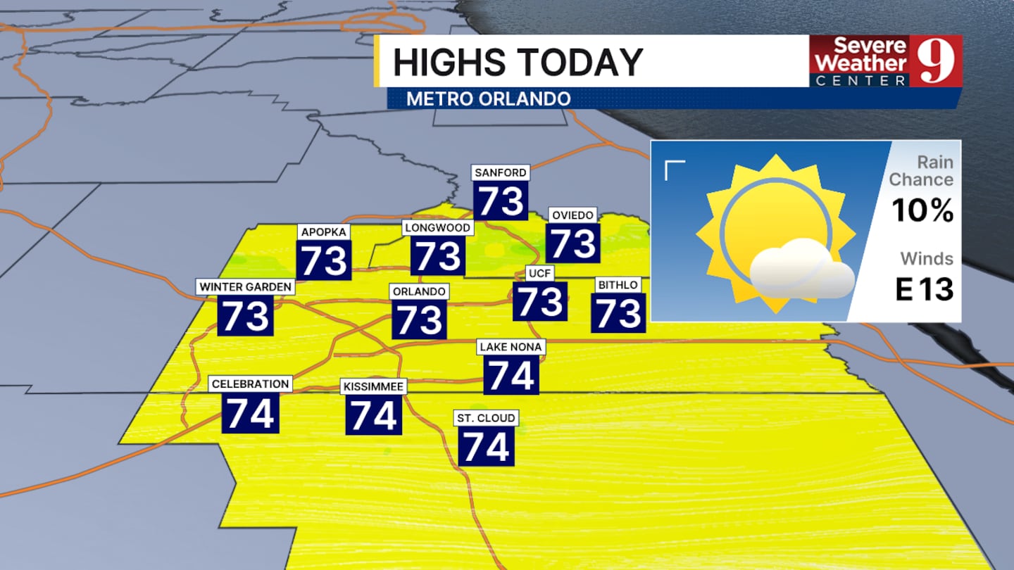 ORLANDO, Fla. — Central Florida will see a warm-up this weekend, with temperatures reaching into the lower 70s on Saturday because of a wind shift.